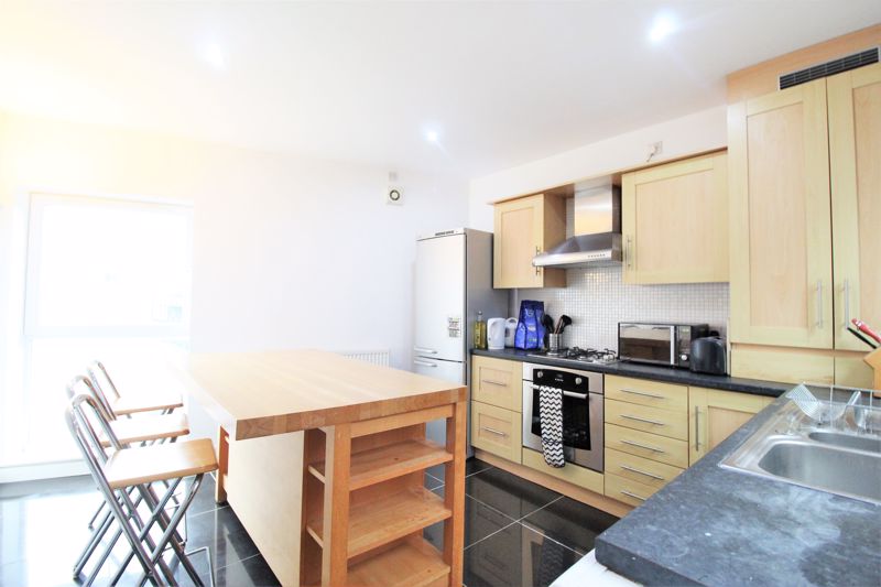Stunning architect designed features including a top floor decked TERRACE, which is accessed from the top landing. The three bedrooms are spacious double bedrooms that come fully furnished. There are two bathrooms, one is situated on the ground floor to accompany bedroom one and the second bathroom is a large family bathroom situated on the first floor. The two bathrooms offer more privacy for the three bedrooms. Upstairs offers a fantastic living room which comes fully furnished and a landing that leads to a brilliant sized kitchen. The kitchen is fully fitted and all appliances are included with the property.
