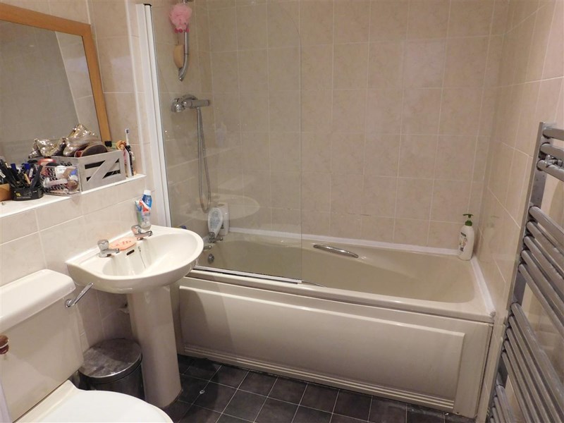 Three piece bathroom suite. Lino flooring. Gas central heating. Bath & shower combined, wash basin and toilet. Ceiling light point.