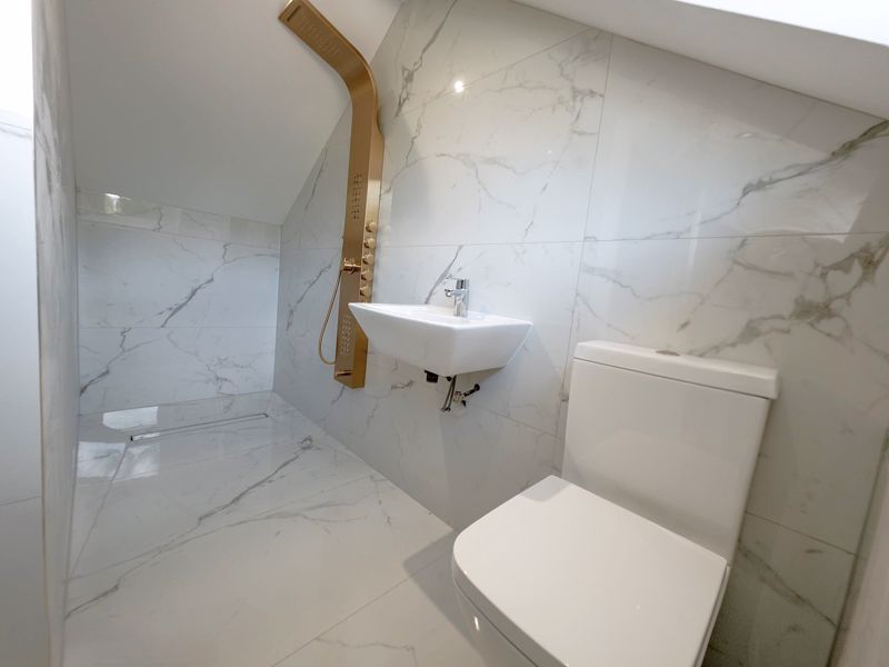 Tiled to walls, double glazed window, power shower, tiled to floor, sik and low level w.c.